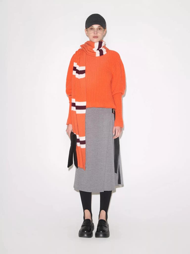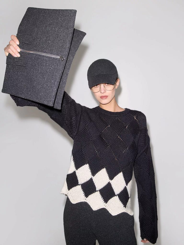 Inspired by the effortless attitude of preppy icons and the atmosphere of the most exclusive universities, the MRZ collection combines heritage details and modern touches for a sophisticated yet confident look. Tailored trousers, pleated skirts and structured outerwear mix with sporty-chic details such as knitted baseball caps, wool bomber jackets and clean-cut joggers. Knitwear is the undisputed star: MRZ elegantly reinterprets diamond patterns, a symbol of tradition and craftsmanship, with buttonholes as details.