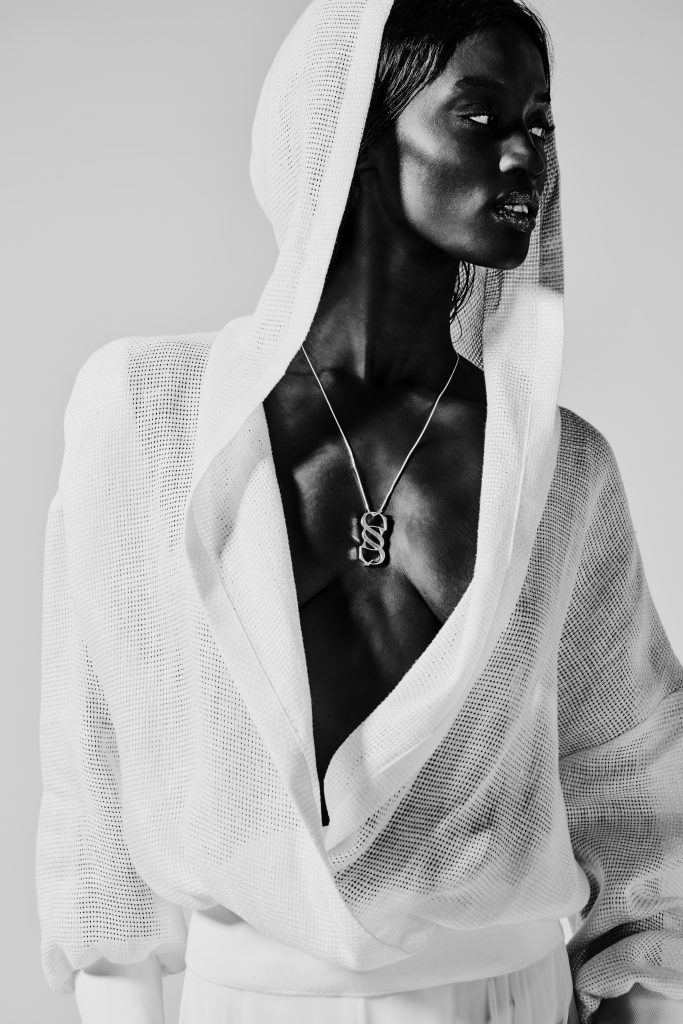 Exploring the tensions and contradictions that define us all as human beings, SAGIO’s latest collection is a powerful tribute to tailoring, eroticism and audacity, as well as an engaging way to celebrate cerebral seduction. The woman Alexander Sagio keeps returning to cannot be defined by gender alone. She is, in fact, the perfect symbiosis between masculine and feminine, moving beyond traditional binaries to embrace a freed and emancipated state, which reflects nature and its purely spontaneous laws.